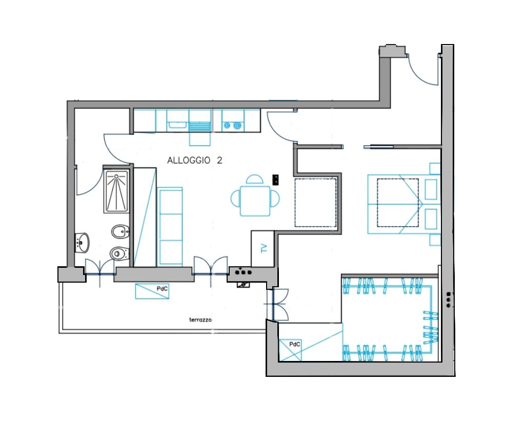 Dal punto di vista impiantistico l’appartamento sarà dotato di soluzioni moderne ad alta efficienza energetica, tra cui infissi ad elevato isolamento termico e riscaldamento a pavimento con pompa di calore, per garantire comfort abitativo e riduzione dei consumi.