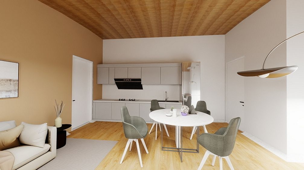 L’appartamento nasce dal recupero e dalla valorizzazione del sottotetto dell’edificio e sarà consegnato completamente ristrutturato e pronto entro fine 2026, con finiture moderne e impianti tecnologici di ultima generazione.