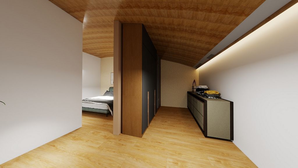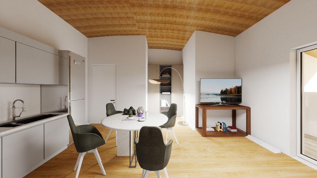 L’appartamento nasce dal recupero e dalla valorizzazione del sottotetto dell’edificio e sarà consegnato completamente ristrutturato e pronto entro fine 2026, con finiture moderne e impianti tecnologici di ultima generazione.